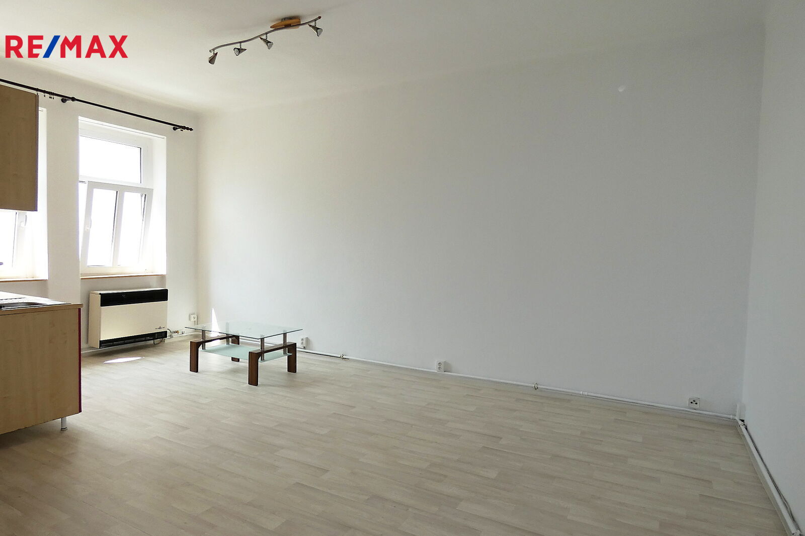 Byt se skládá jedné velké místnosti s kuchyňským koutem. Místnost je orientována na západ do vnitrobloku. Místnost je vybavena kuchyňskou linkou, kombinovaným sporákem, vestavěnými skříněmi, předsíňovou stěnou a konferenčním stolkem.