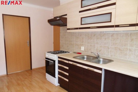 Vybavení bytu: kuch. linka, kombi. sporák, jídelní stůl, 3 židle.