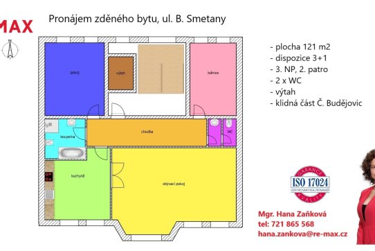 Nabízíme k pronájmu byt v klidné části v blízkosti centra města. Byt o dispozici 3+1 se nachází ve druhém patře (3.NP) zděného domu s výtahem.