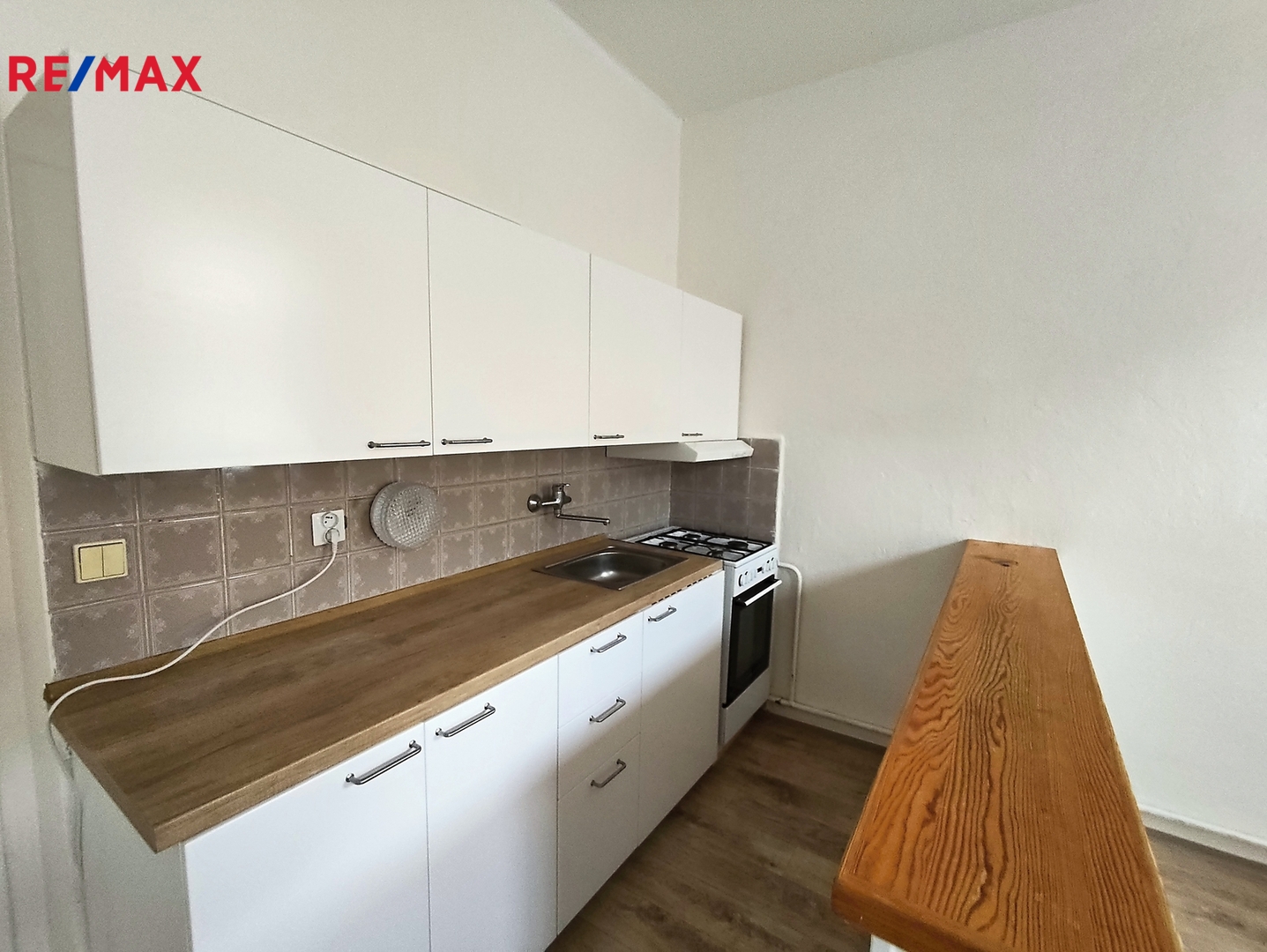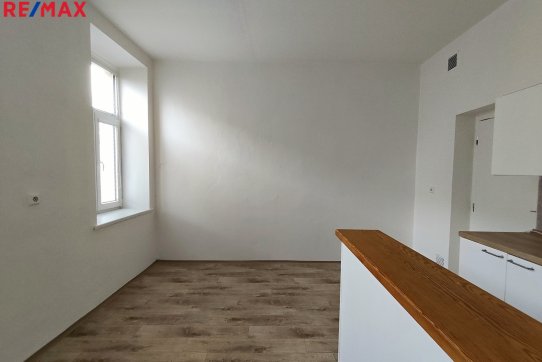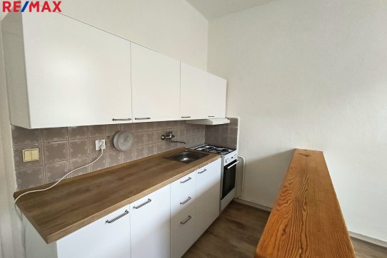 Obytná kuchyně – 16,5 m², vybavená kuchyňskou linkou, kombinovaný sporák (plyn/elektřina), digestoř, vyzděný barový pult. V kuchyni není možné připojení myčku nádobí.