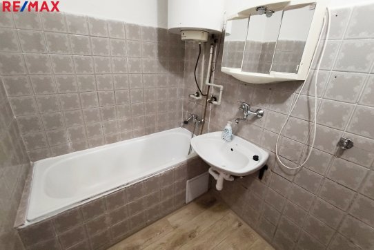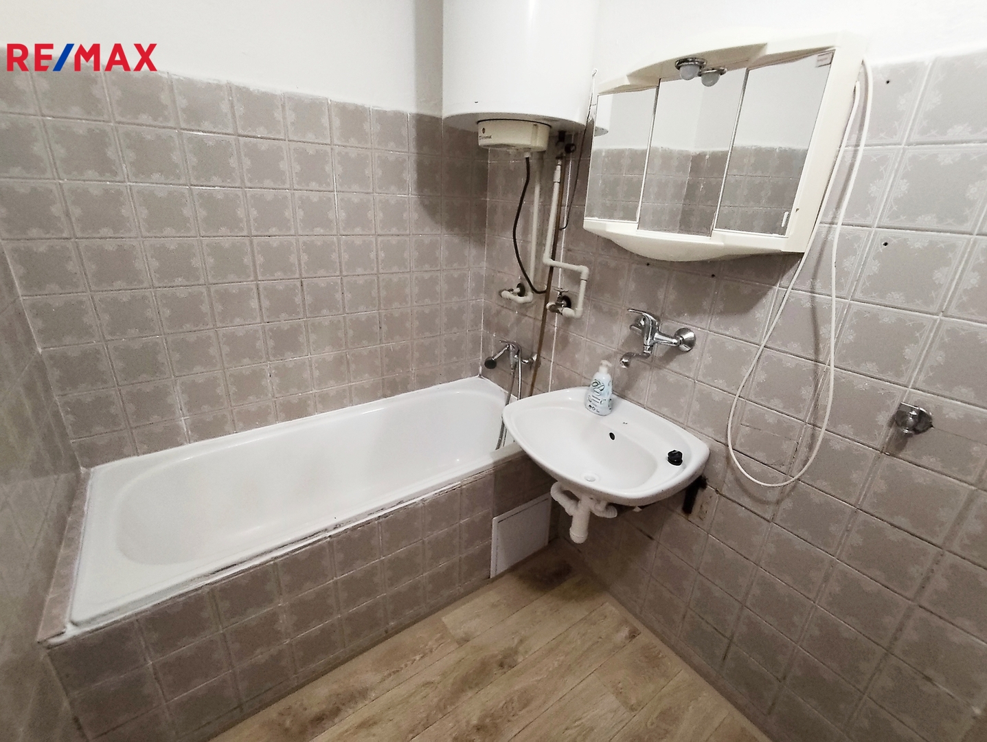 Koupelna – 3,5 m², vana, umyvadlo, přípojné místo pro pračku.