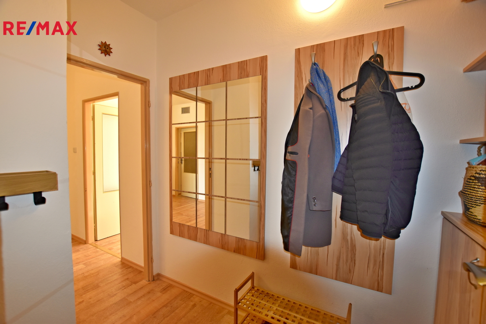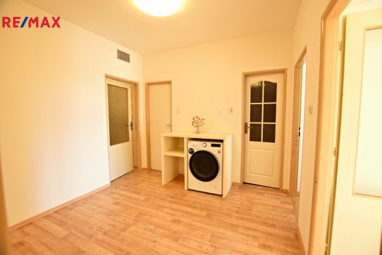 Dispozice bytové jednotky sestává ze vstupní chodby, haly s vestavnými skříněmi a úložnými prostory, prostorné kuchyně s kuchyňskou linkou vybavenou varnou deskou, elektrickou troubou, lednicí, dalšího samostatného pokoje, samostatného WC a zrenovované koupelny s umyvadlem, sprchou a přípojkou na pračku.