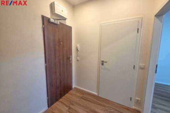 Do bytu se vstupuje předsíní (4 m2), ze které je vstup do pokoje s kuchyňským koutem a do koupelny.