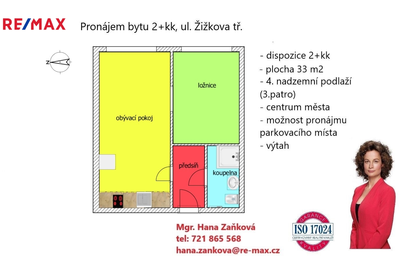 Nabízíme k pronájmu zrekonstruovaný byt 2+kk, umístěný v 3 NP multifunkční budovy v žádané lokalitě v blízkosti centra města v ulici Žižkova.