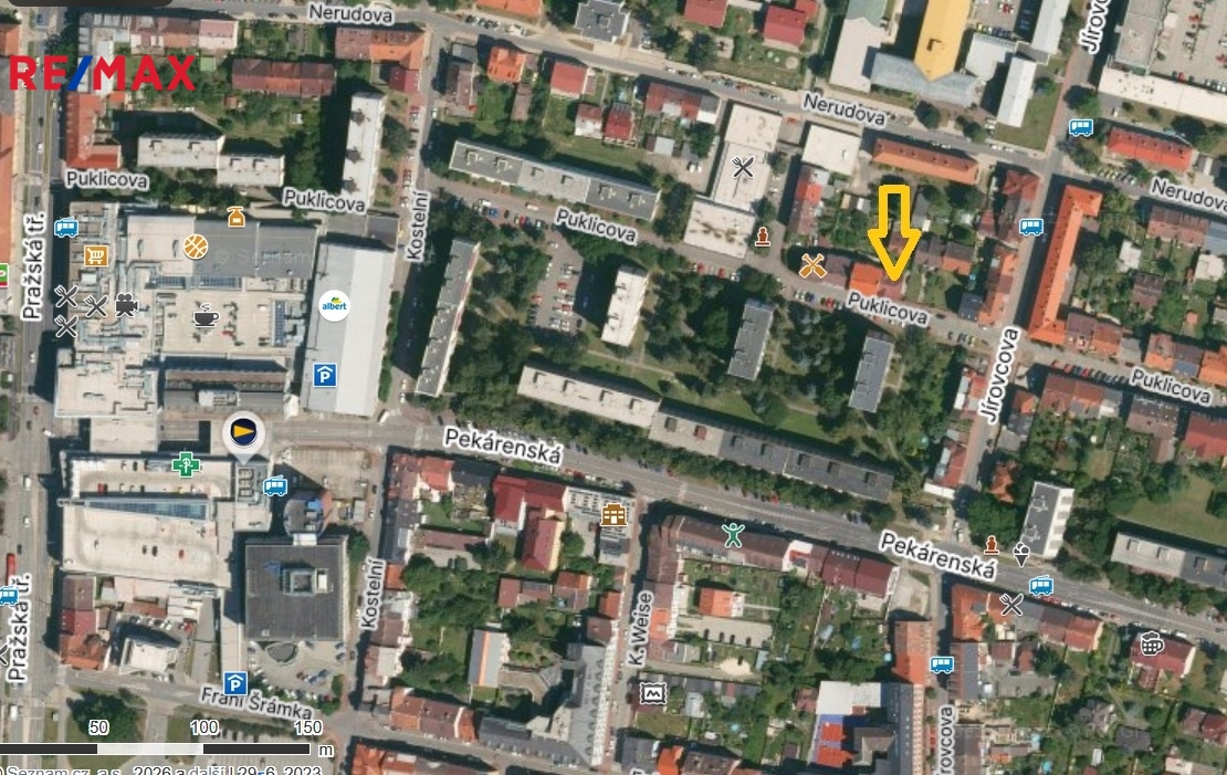 Lokalita v Puklicově ulici nabízí kombinaci toho, co je v centru města čím dál vzácnější – výbornou dostupnost, stabilní územní regulaci a reálný rozvojový potenciál. V bezprostředním okolí se nachází obchodní centrum IGY, zastávky MHD, občanská vybavenost i pěší dostupnost historického jádra města.