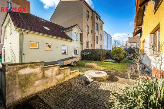 Součástí pozemku ve tvaru „L“ o celkové výměře 740 m2 jsou dva samostatné rodinné domy.