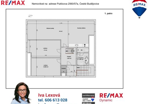 V přední části z Puklicovy ulice se nachází nepodsklepený objekt z r. 2001 o zastavěné ploše 127 m2. V přízemí budovy je nebytový prostor, kolaudovaný jako prodejna textilu se zázemím, které tvoří prádelna, kancelář a sociální zařízení. Samostatným vchodem je přístup do 2. NP, kde se nachází bytová jednotka 3+kk s podlahovou plochou 89 m2. Z bytu je dřevěnými schůdky dále přístup do podkrovní místnosti s plochou 27 m2. Vytápění domu je řešené ústředními rozvody, zdrojem tepla i ohřevu vody je plynový kotel. Dispoziční řešení objektu najdete na přiloženém orientačním půdorysu.