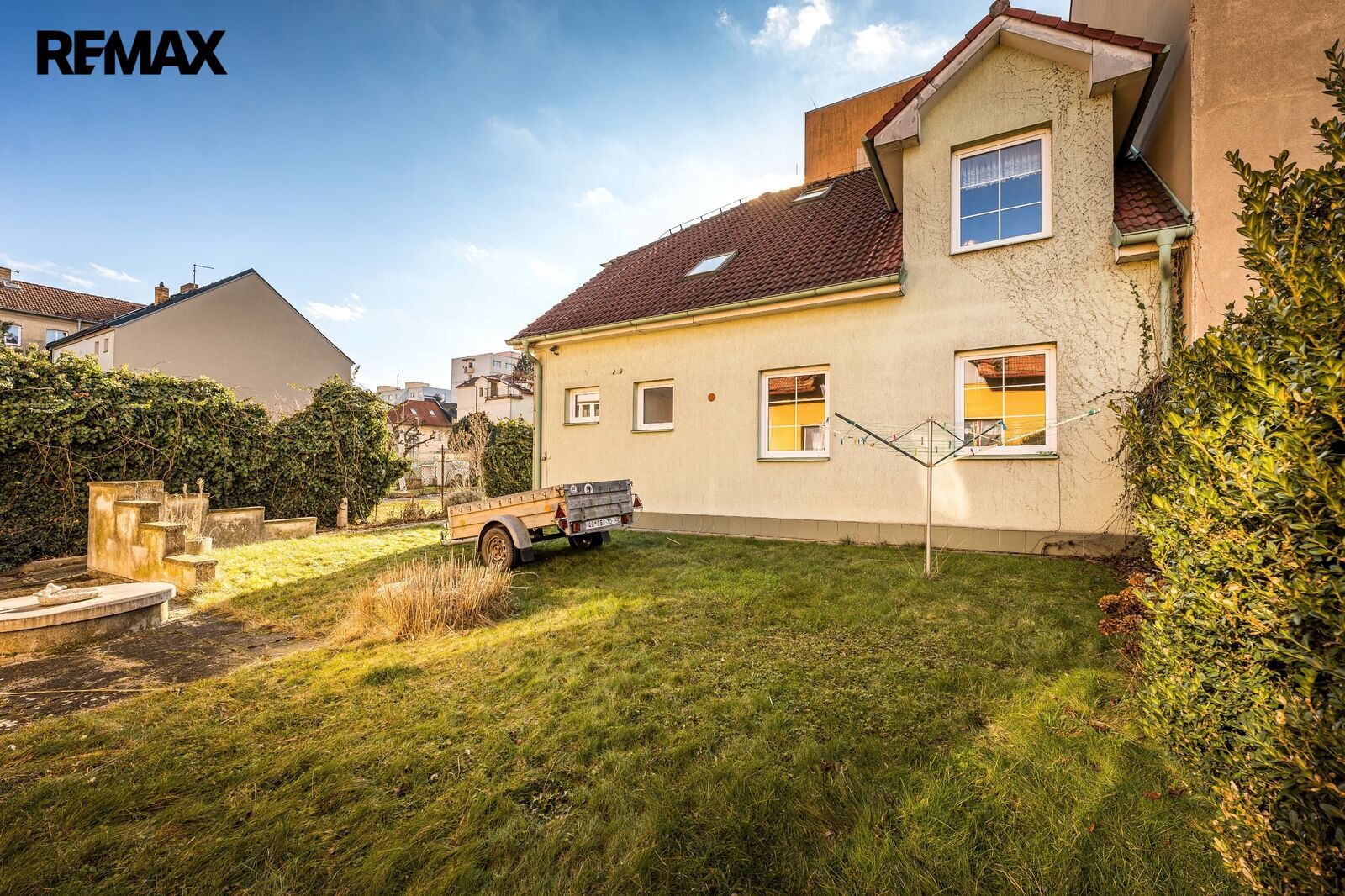 Součástí pozemku ve tvaru „L“ o celkové výměře 740 m2 jsou dva samostatné rodinné domy.