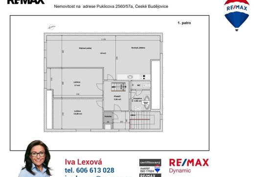 V přední části z Puklicovy ulice se nachází nepodsklepený objekt z r. 2001 o zastavěné ploše 127 m2. V přízemí budovy je nebytový prostor, kolaudovaný jako prodejna textilu se zázemím, které tvoří prádelna, kancelář a sociální zařízení. Samostatným vchodem je přístup do 2. NP, kde se nachází bytová jednotka 3+kk s podlahovou plochou 89 m2. Z bytu je dřevěnými schůdky dále přístup do podkrovní místnosti s plochou 27 m2. Vytápění domu je řešené ústředními rozvody, zdrojem tepla i ohřevu vody je plynový kotel. Dispoziční řešení objektu najdete na přiloženém orientačním půdorysu.