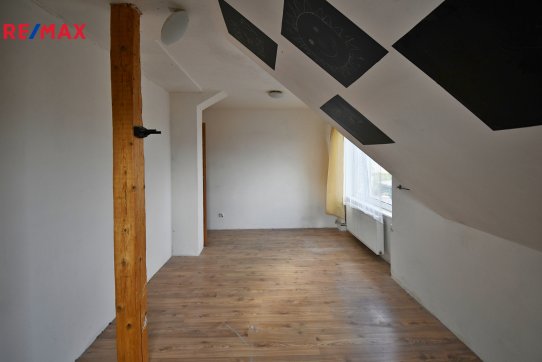 Dům má velký potenciál, díky nutnosti nové střechy můžete plně využít půdní prostor pro moderní přestavbu.