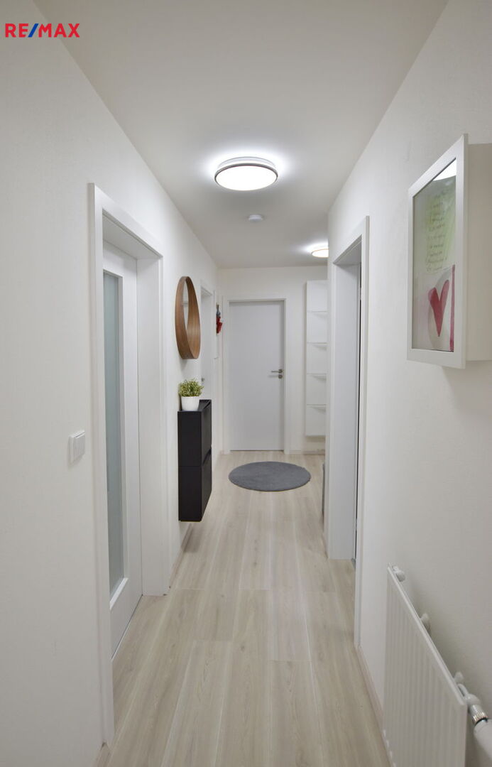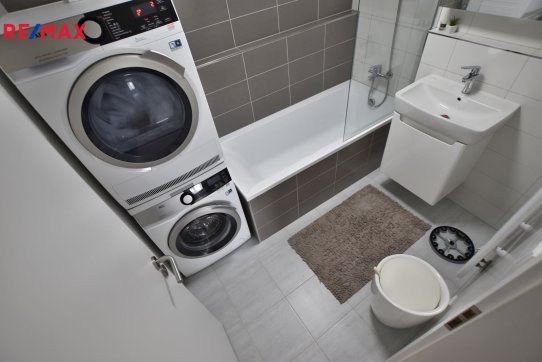 Součástí je sklep v přízemí domu a zastřešené parkovací stání (+ možnost podnájmu dalšího venkovního stání). Byt se pronajímá kompletně vybavený (kromě pračky se sušičkou).
