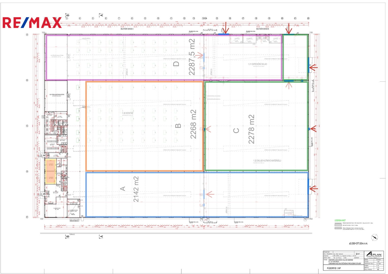 Plocha prostor k pronájmu činí 2.142m2. Sektor A (viz přiložený plánek).