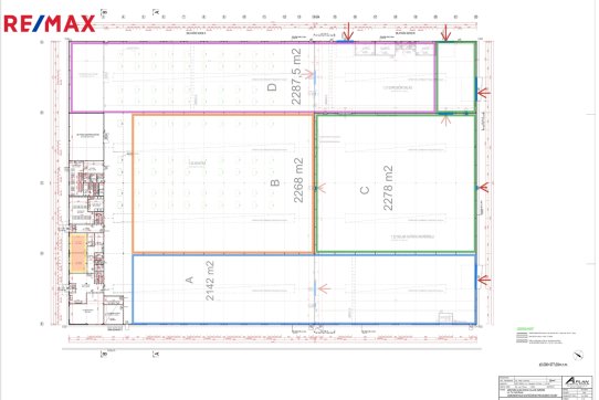 Je rovněž možné pronajmout části B+C (o velikosti 4.546m2) dle přiloženého plánku, nebo celý prostor o velikosti 6.688 m2.