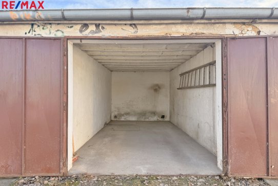 Nachází se v bloku řadových garáží na pozemku o zastavěné ploše 20 m2. Je v dobrém technickém stavu, bez známek vlhkosti s opravenou střešní krytinou. Není zde přípojka elektřiny.