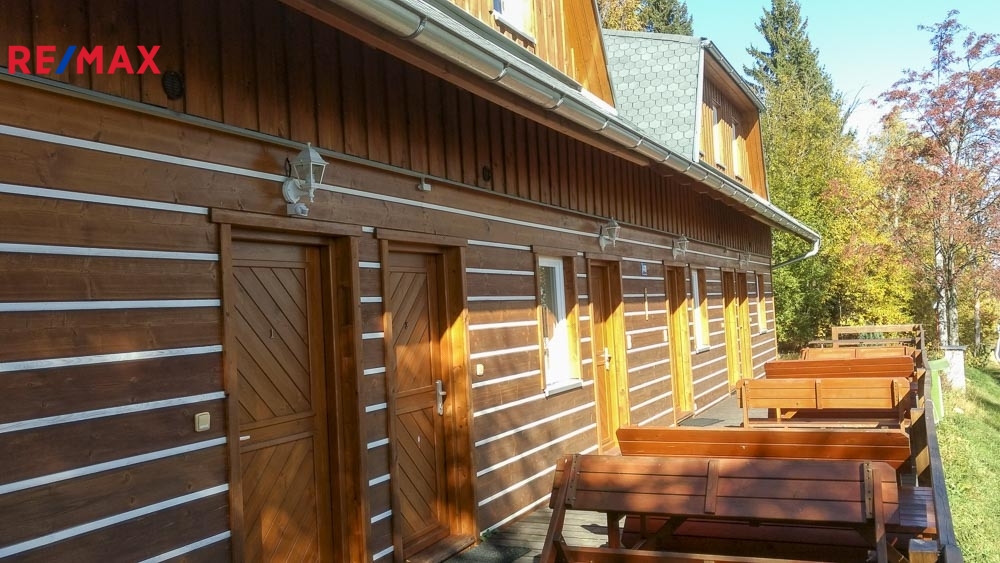 Nabízíme k prodeji apartmánový dvojdům, který je ideálním místem pro pohodové ubytování v atraktivní lokalitě obce Kůsov - Zadov - Šumava. Tento komerční objekt je zhotovený z kvalitní dřevostavby a nachází se ve velmi dobrém stavu. Svým návštěvníkům poskytuje možnost ubytování ve čtyřech a pěti lůžkových apartmánech o velikosti 3+kk či 2+kk v 1. NP a 2. NP. Z celkem osmi apartmánů se pronajímá sedm, zbývající jeden je využíván majiteli jako technické a pracovní zázemí pro celý objekt. Celková kapacita v provozovaných sedmi apartmánech je 33 lůžek. Každý apartmán je navržen tak, aby maximálně vyhovoval potřebám ubytovaných. Nachází se zde, plně vybavený kuchyňský kout (s chladničkou, vařičem, mikrovlnnou troubou a rychlovarnou konvicí) propojený s obývacím pokojem a dále dle typu jedna či dvě samostatné ložnice. V každém apartmánu je vlastní koupelna se sprchovým koutem, umyvadlem, toaletou, bojlerem a topným tělesem.