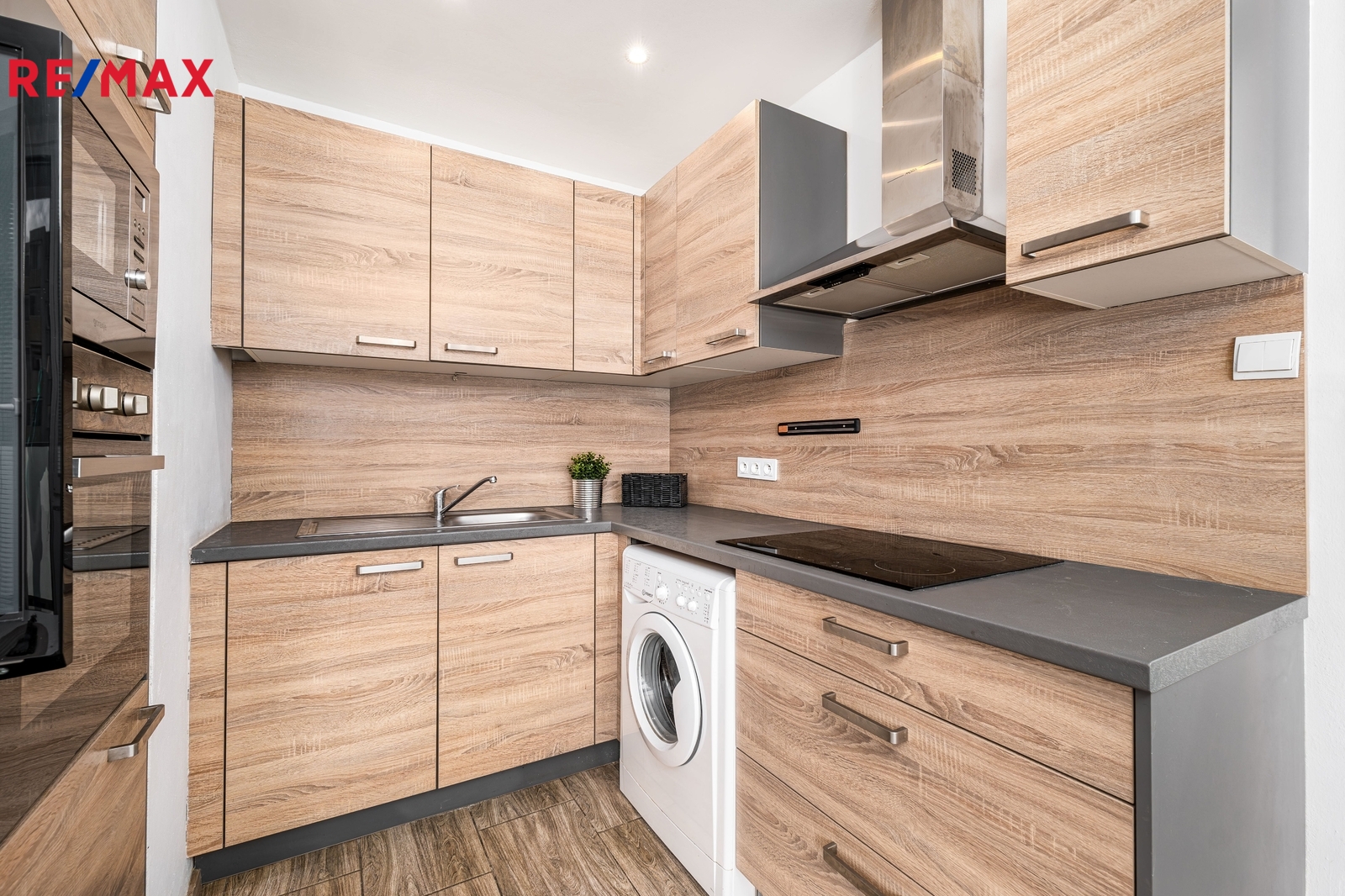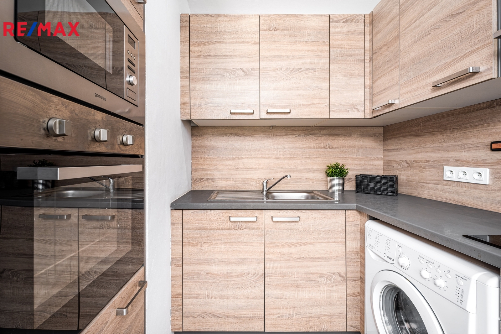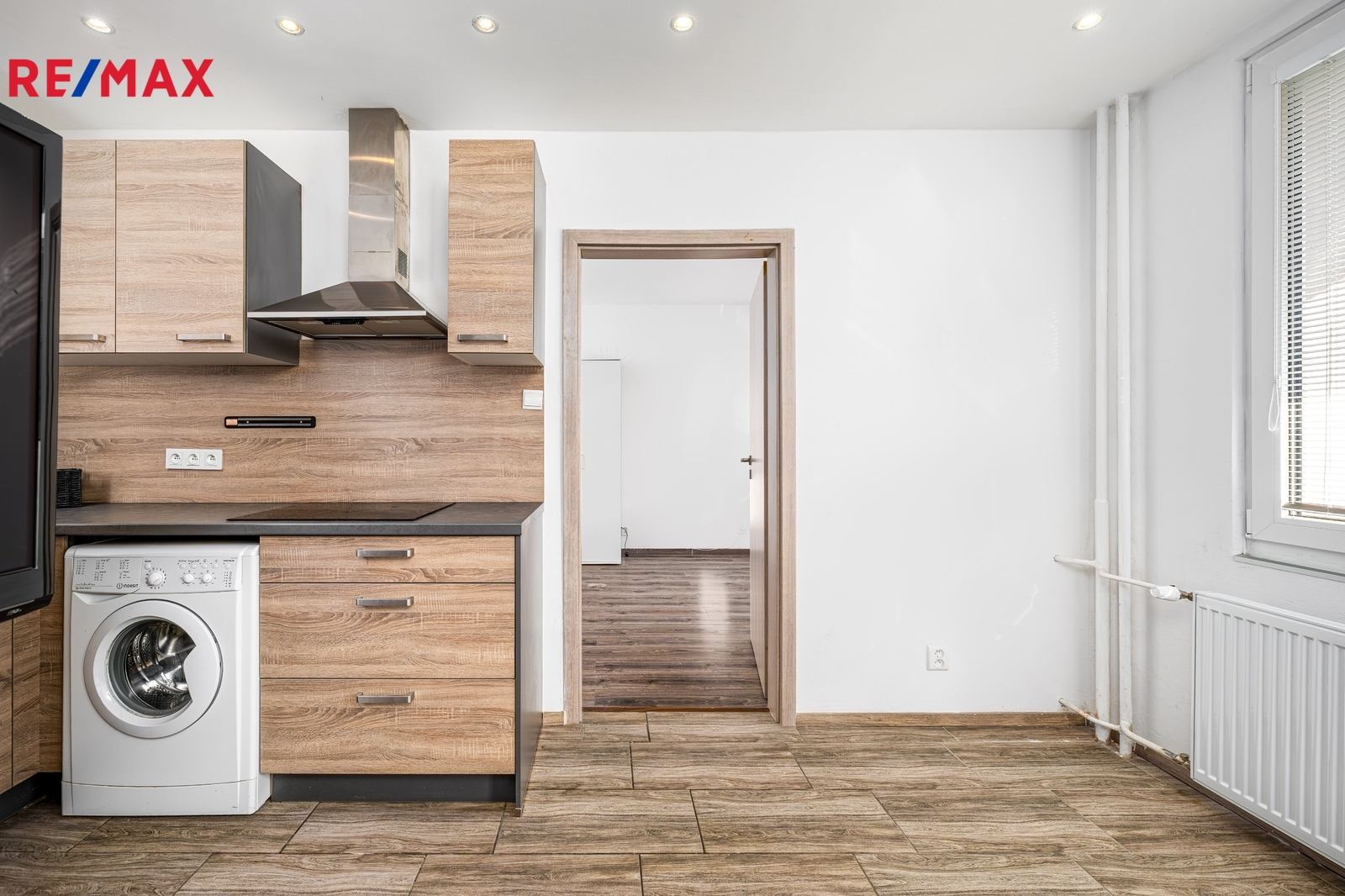 Prodává se včetně vybavení: kuchyňská linka se spotřebiči (sklokeramická varná deska, horkovzdušná a mikrovlnná trouba, pračka), botník v předsíni, šatní skříň s manželskou postelí v ložnici, osvětlení a televize.